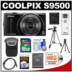 Compare Prices : Nikon Coolpix S9500 Wi-Fi GPS Digital Camera (Black) with 16GB Card + Battery + Case + Tripods + HDMI Cable + Accessory Kit